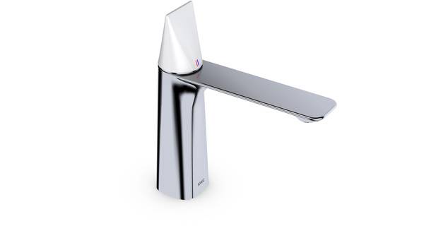 KWC Concept 2020 basiert auf neuester Gusstechnologie: Ein solider, konischer Körper trifft auf einen filigranen, ultradünnen Auslauf. Darüber sitzt der Bedienungsknopf, den es in drei unterschiedlichen Ausführungen gibt – rund, spitz oder mit Hebel.
