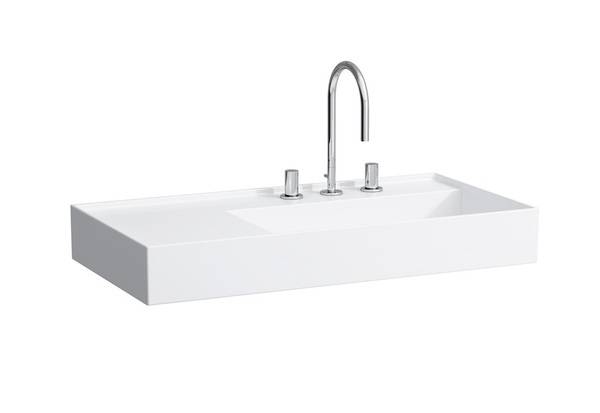 Hahnlöcher: Aufsatzwaschtisch: ohne, Schrankwaschtisch: für 3-Loch-Armatur geeignet, mittleres Hahnloch durchgestochen