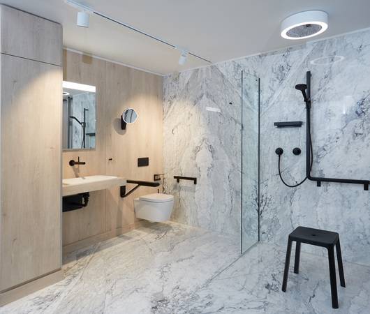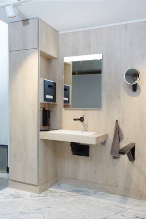 Keuco hat sich mit dem Thema beschäftigt und mit Badia, Gerloff und der IBS-GmbH starke und erfahrene Partner gefunden, um den Anforderungen gerecht zu werden. So können systemische Bäder für verschiedene Zwecke – wie Kliniklösungen für gesetzlich Versicherte (GKV) und Seniorenwohnungen, privat Versicherte (PKV), anspruchsvolle Hotelbäder inklusive ästhetischer barrierefreier Bäder, Lösungen für studentisches Wohnen, Jugendherbergen, Apartments wie auch Luxuswohnungen – entstehen. Je nach Kundenwunsch sind diese auch mit einer Stückzahl von 1 realisierbar.
