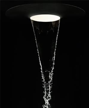 Die Wirkung von Aqua Circle reguliert sich über die Wassermenge. Wie ein weicher Trichter fällt das Wasser aus der Kuppel. Je mehr Wasser, desto kleiner wird der Trichter. So entsteht ein kraftvoller, gebündelter Strahl, der sich zum Beispiel für die Reinigung und Haarwäsche anbietet. Bei weniger Wasser vergrößert sich der Trichter, lässt den Kopf frei, und das Wasser fällt wie ein Regenvorhang ruhig und gleichmäßig auf die Schultern. So wirkt Aqua Circle entspannend und meditativ.