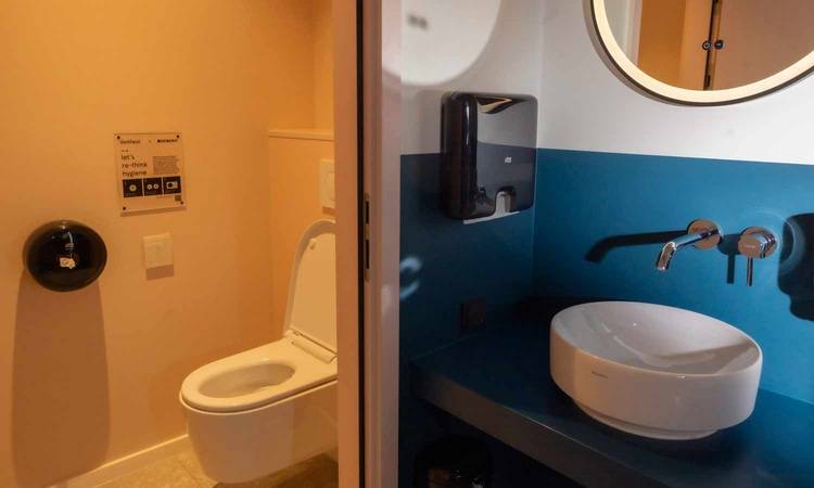 Die Entscheidung für das Dusch-WC von Geberit hat der Firmengründer getroffen. Privat ist er selbst überzeugter Geberit-Dusch-WC-Nutzer: „Ich habe seit 5 Jahren ein Dusch-WC von Geberit, und ich bin ein Fan.“ Bei Wellnest wollte er Dusch-WCs haben, weil Hygiene an oberster Stelle steht: „Ein Dusch-WC ist wesentlich hygienischer als die Reinigung mit Toilettenpapier. In vielen Ländern der Welt wird der Po schon immer mit Wasser gereinigt, Deutschland und Europa sind da weltweit eher die Ausnahme.“