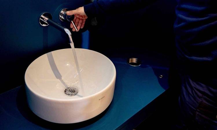 Projektleiter Johann Homann erinnert sich an die Planung der Bäder: „Qualität war sehr wichtig. Es sollte eine verlässliche Marke sein und das Design sollte zum Konzept passen. Zum Beispiel waren keine eckigen Keramikprodukte gewünscht, es sollte eher ein weiches Design dominieren.“ Folglich sind durchgehend in allen Nestern die Keramikprodukte von runden, organischen Formen geprägt. Der Bauherr hat sich zum Beispiel für die runde Ausführung des Geberit VariForm Aufsatzwaschtisches mit 40 cm Durchmesser entschieden. Durch die Spezialglasur KeraTect ist die Waschtischkeramik zudem sehr leicht zu reinigen – ein Vorteil in allen hoch frequentierten Sanitärbereichen.