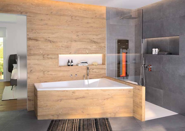 Das Infrarotpaneel Bilbao hatte es in die Badplanung und somit ins neue Badezimmer der Familie geschafft. Den Badhocker aus Mineralwerkstoff wählten die beiden im Material passend zur Duschfläche gleich mit dazu aus. Die samtig warme Oberfläche des Werkstoffes hatte sie überzeugt. Frau Lang, eine leidenschaftliche Vielbaderin, bestand auf einer Badewanne. Sie wünschte sich eine großzügige Wanne, in der auch bequem zwei Personen Platz finden, mit Massageoptionen im Rückenbereich. Zudem war es ihr wichtig, dass die Wannenform nicht aufträgt und in den Raum ragt, sondern sich formschön dem Badezimmer anpasst.
