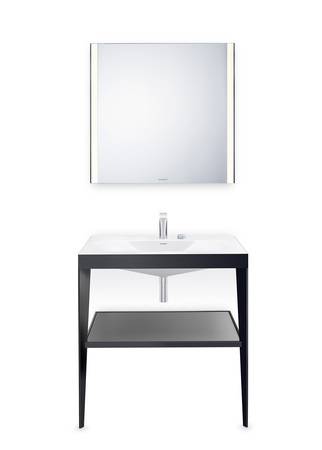 Die samtmatte Lackoberfläche der Möbel mit einem leichten Metallic-Schimmer passt zu den exklusiven Ixmo-Duscharmaturen sowie zu den Armaturen und Accessoires der Edition 400 und der Edition 11 in Schwarzchrom gebürstet. Für ein stimmiges Bild setzt der Lichtspiegel Royal Lumos mit umlaufendem Rahmen in Schwarz eloxiert ein leuchtendes Highlight. Optional ist er mit Spiegelheizung und mit Soundsystem erhältlich.