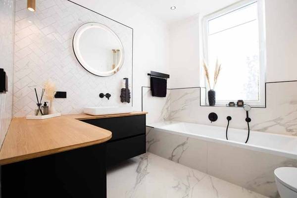 Warum sie am liebsten Premium-Produkte von Kaldewei aus kreislauffähiger Stahl-Emaille verbaut, erklärt die 29-Jährige ohne Umwege: „Es soll funktionell sein, aber gleichzeitig gut aussehen und Wiedererkennungswert haben. Gerade bei Sanitärprodukten sollte man nicht am Material sparen. Stahl-Emaille speichert die Wärme und ist enorm beständig“, erklärt Sandra. Dazu überzeugt nachhaltige Stahl-Emaille durch stoßfeste, kratzfeste und besonders hygienische Eigenschaften.