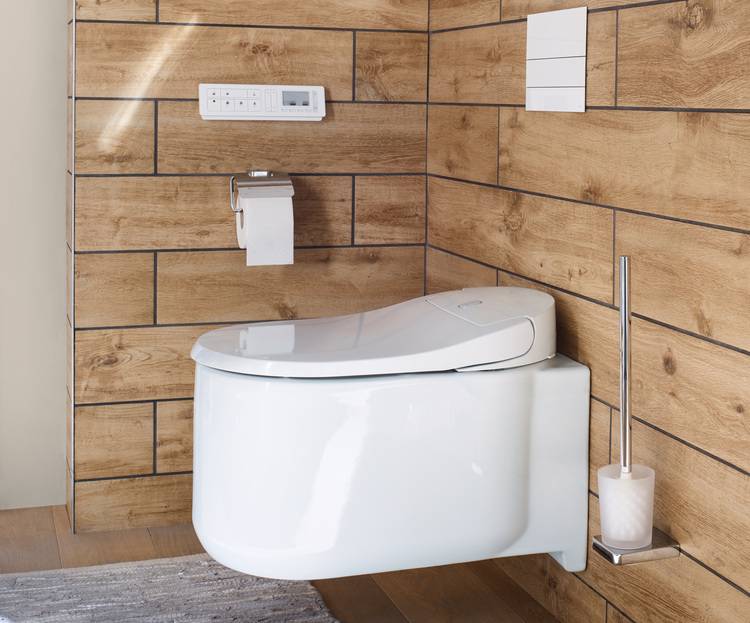 Das neue Dusch-WC ermöglicht über sein integriertes Duschelement eine sehr effiziente wie sensible Intimhygiene. Wassertemperatur, Strahlart und Strahlposition der Duschfunktion lassen sich dafür individuell exakt passend einstellen. Für die anschließende Trocknung der Haut sorgt ein Komfort-Warmluftföhn mit regulierbarer Temperatur. Alle Funktionen lassen sich über die Bedieneinheit an der WC-Seite oder bequemer per Fernbedienung oder App (iOS und Android) steuern. In der App können zusätzlich die bevorzugten Einstellungen als Nutzerprofil abgespeichert werden.