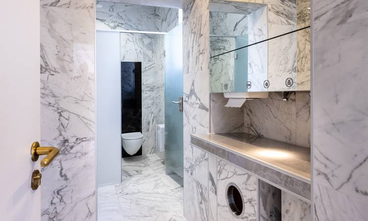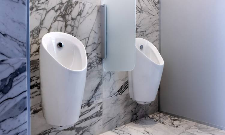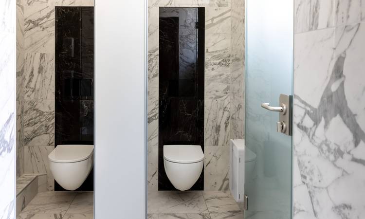 In den Herren-Toiletten finden sich Urinale des Modells Preda von Geberit, mit den dazu passenden Trennwänden. Wie die Acanto WCs verfügen auch die Preda Urinale über eine berührungslose Spülauslösung. Die Serie überzeugte den Auftraggeber durch ihr stimmiges, dezentes Design und ihre Wartungsfreundlichkeit. Installateur Kavalir ist überzeugt: "Im Bedarfsfall kommt man ganz einfach von vorne an die Elektronik. Das heißt, man muss nicht jedes Mal die ganze Keramik abnehmen und zum Schluss die Silikonfuge wieder erneuern. Das erleichtert die Arbeit enorm und zahlt sich langfristig aus."