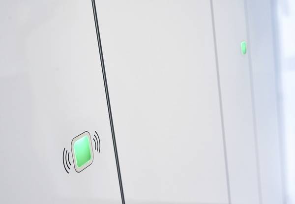Bei der WC-Kabinentür Look & Wave smart erfolgt das Öffnen und Schließen mittels moderner LED- und Sensortechnologie berührungslos. In Verbindung mit anderen Sensorsystemen wie Wasserhähnen, WC-Spülungen und Seifenspendern sowie automatischen Händetrocknern schließt das System das letzte Glied in der Hygienekette im Sanitärbereich. Das Risiko der Übertragung von Keimen und Bakterien wird damit nochmals reduziert.