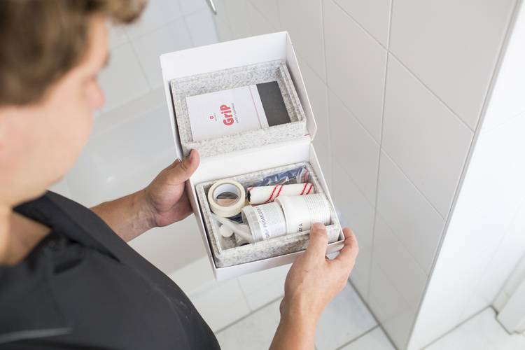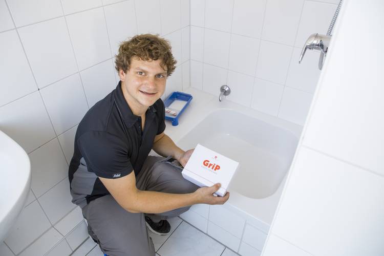 Seit mehr als drei Jahren arbeitet Martin Bunz mit dem Produkt GriP AntiRutsch des Schweizer Herstellers GriP Safety Coatings AG. Der gelernte Schreiner ist Monteur bei der Repabad GmbH in Wendlingen am Neckar und baut die Oberflächenbeschichtung direkt vor Ort bei Kunden ein. Wie die unkomplizierte Montage funktioniert, zeigt er Schritt für Schritt in dieser Anleitung.