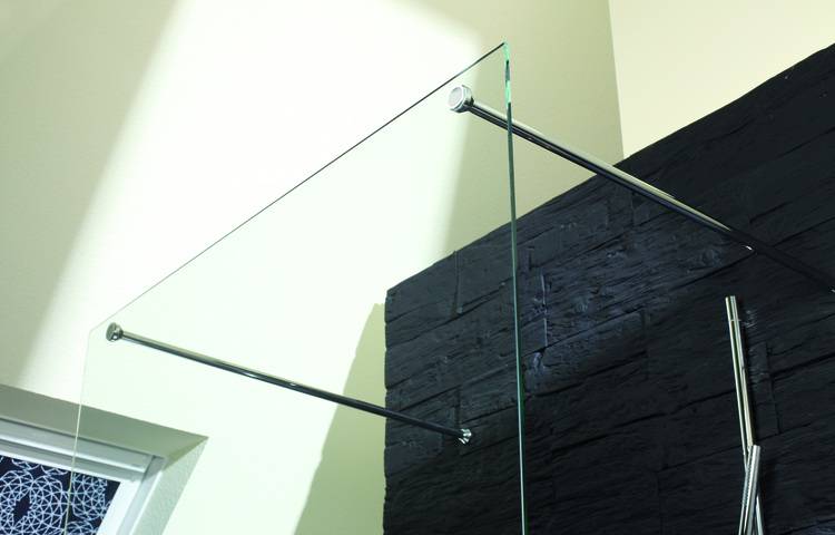 Mit dem entwickelten Nachrüst-Set können Glastüren schnell und einfach an bereits verbaute Duschabtrennungen nachmontiert werden. Der Klemmbeschlag mit Hebe-Senk-Pendelfunktion wird ohne Bohren fixiert und bietet durch das hochwertige 8 mm starke Einscheiben-Sicherheitsglas der Tür mehr Wärme während des Duschens und erhöhten Spritzwasserschutz. Der Beschlag ist auch für verbaute Walk-in Duschen anderer Hersteller mit 6 bis 11 mm starkem Glas geeignet. Falls nicht vorhanden, muss eine Haltestange für das vorhandene Festfeld nachgerüstet werden.