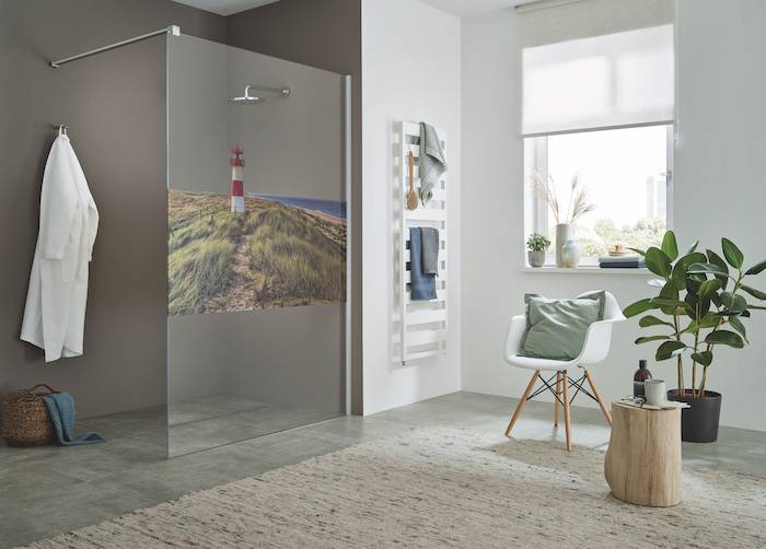 Sprinz: Gedruckter Sichtschutz in der Walk-in Dusche – auf beiden Seiten gleich schön