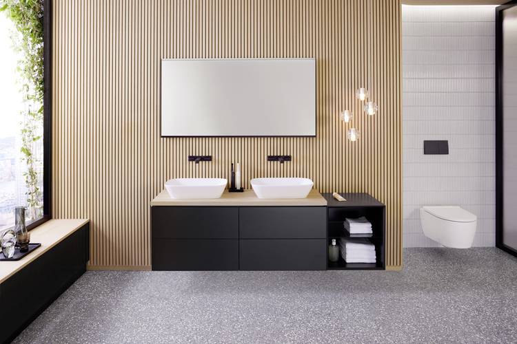 Ja, hundertprozentig! Es gibt eine intime Beziehung zwischen Schlafraum und Bad – und die Barrieren dazwischen werden weicher. Dieser Trend spiegelt sich auch stark in der Hotellerie: Viele Hotels spielen mit offenen Badkonzepten, vielleicht kann man in der Badewanne liegen und trotzdem aus dem Fenster schauen. Die geflieste Nasszelle, die ich persönlich ganz fürchterlich finde, bricht auf. Dazu braucht es einfach Technologie, die mit Feuchtigkeit, aber vor allem mit Gerüchen umgehen kann. Es braucht Produkte, die verstehen, wie wir leben und was uns eigentlich stört.