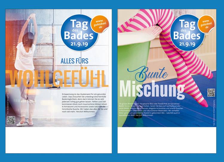 Die Vereinigung Deutsche Sanitärwirtschaft (VDS) gibt in ihrer Vorschau auf den nächsten Tag des Bades am 21. September 2019 bekannt, dass erstmals in ihrer 15-jährigen Geschichte die gemeinsame Branchenaktion mit zwei eigenständigen Kampagnen an den Start geht. Die Premiere greift unterschiedliche Sachthemen auf und bietet den mitwirkenden Betrieben die Möglichkeit zur freien Entscheidung, erklärt der Dachverband das Konzept.