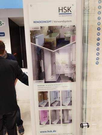 HSK präsentiert auf der IFH u.a. das RenoConcept, basierend auf den gleichnamigen Trägerplatten. © haustec.de