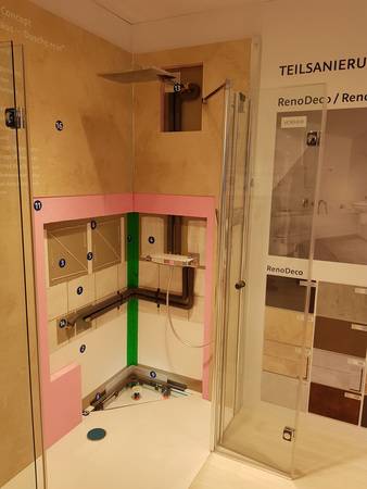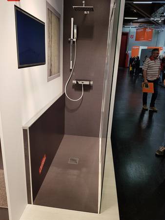 Mit den RenoDeco-Platten lassen sich bodenebene Duschen komplett realisieren. Mal sehen, wie das im Markt ankommt. © haustec.de