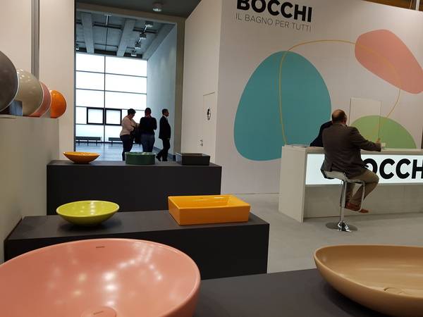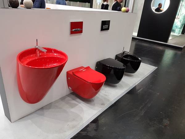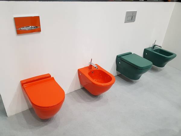 ... Orange und grün, am Stand des italienischen Herstellers fand man Waschtische und Co. wieder in allen Farben. © haustec.de