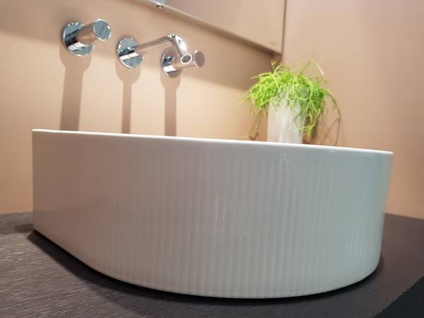 Da die Fliesenfarbe auf der ISH so gut ankam, soll es bei Alape in absehbarer Zeit Waschtische in dieser Farbe geben - wir sind gespannt! Anzeige