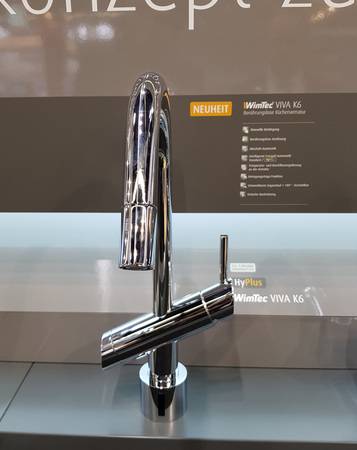 Die elektronische Küchenarmatur Viva K6 von Wimtec ist berührungslos und mit Einhebelmischer bedienbar. Dank der intelligenten Freispül-Automatik Wimtec HyPlus stellt sie die Trinkwasserhygiene sicher. © haustec.de
