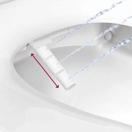 Für die Reinigung und sanfte Pflege sorgen zwei auswählbare Programme. Im Bidetmodus kann die Position des Wasserstrahls durch eine bewegliche Düse in fünf verschiedene Positionen eingestellt werden. Diese gewährleisten eine gezielte und gründliche Reinigung des Intimbereichs.