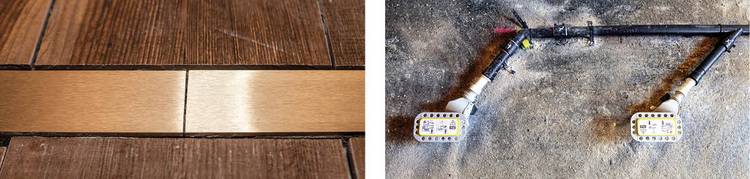 2: Konstruktiv „weitergedachte“ Duschrinnenprofile mit entsprechender Ausgestaltung der Profil-Enden vereinfachen die „nahtlose“ Installation mehrerer Duschprofile, wahlweise in Reihe oder über Eck (Bild 4). Neben gestalterischen Vorteilen hat dies einen nicht zu unterschätzenden Nebeneffekt: die deutliche Steigerung der Ablaufleistung, wie sie in besonders komfortabel ausgestatteten Wellnessduschen oder in anspruchsvollen Duschanlagen von Hotels notwendig sein kann. Denn dann lässt sich über die Kombination aus zwei oder drei Duschrinnen eine optisch als Einheit wirkende Entwässerung schaffen, in der aber eben auch zwei oder drei Punktabläufe ihren Dienst versehen – inklusive automatisch linear höherer Entwässerungsleistung (Bild 5).