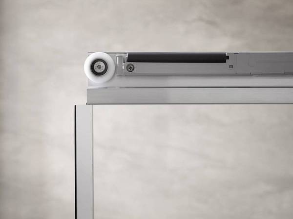 Eine weitere platzsparende Türlösung, die der Fachhandwerker anbieten kann, ist die Schiebetür. Damit wird ein großer Einstiegsbereich gewährleistet. Durch eine kugelgelagerte Rollenführung ist eine Duschtür leichtgängig zu bedienen und lässt das Türelement sicher und ruhig hinter das Festteil gleiten.
