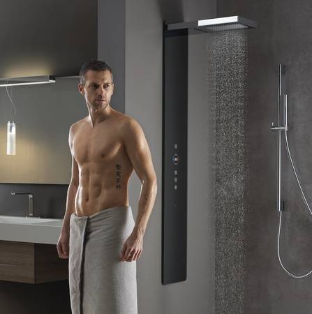 Das elektronische Duschpaneel WimTec Ocean P11 hat einen Wandabstand von nur 16mm. Nähert sich der Benutzer, leuchtet die Bediensymbolik auf und signalisiert ihre Bereitschaft. Temperatur, Durchflussmenge und Strahlarten lassen sich durch einen Fingertipp auf die Glasoberfläche auswählen und speichern. Das Duschpaneel verfügt über einen elektrischen Thermostatmischer mit Temperaturfühler und eine Digitalanzeige. Weitere Zusatzfunktionen sind der Warmlauf und die intelligente Freispül-Automatik zur Sicherstellung der Wasserqualität sowie eine Heißwassersperre. Die aktivierbare Abschalt-Automatik der Ocean P11 stoppt den Wasserfluss, sobald der Nutzer den Ansprechbereich verlässt.