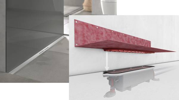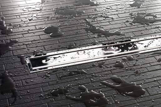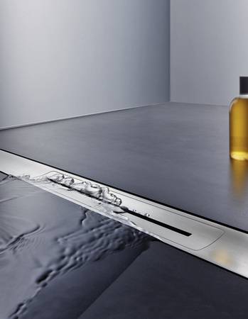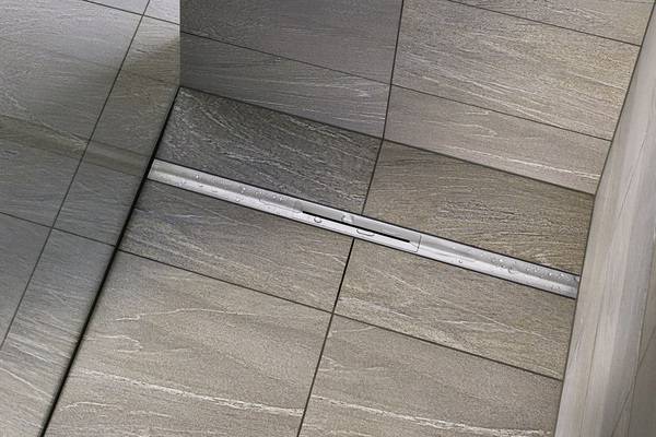 Für Kerdi-Line, eine Komplett-Lösung für bodengleiche Duschen mit Linienentwässerung, stellte Schlüter in Frankfurt Roste und Rahmen aus hochglanzpoliertem Edelstahl vor, die zu Chromoberflächen passen.