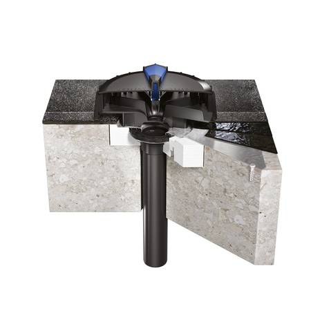 Um den Einbau in stark gedämmte Dächer zu erleichtern, verfügen die Einläufe über neue, längere Ablaufstutzen aus PE. Der Laubfang, der Schmutz und Laub vom Einlauf fernhält, lässt sich dank Drehriegelverschluss mit wenigen Handgriffen und ohne Werkzeuge anbringen und entfernen.