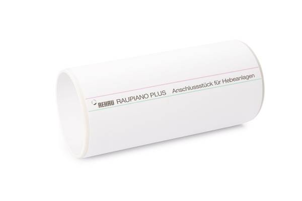 Für den Einsatz des geräuscharmen Gebäudeentwässerungssystem Raupiano Plus bietet Rehau ein formstabiles Anschlussstück in den Dimensionen DN 90 und DN 110 an. Diese dienen als Übergang von der elastischen Verbindung zur Schwingungsentkopplung von Hebeanlagen auf das Raupiano Plus System. Um dabei das Auseinandergleiten der Druckleitung zu verhindern, müssen zwingend auf ganzer Länge der Druckleitung längskraftschlüssige Verbindungsklammern (LKV) angebracht werden.
