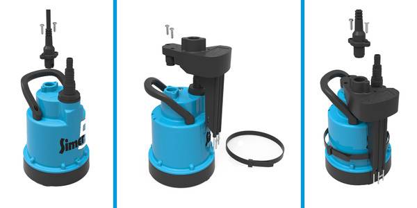 Besonderen Komfort bietet die Elektrodenschaltung SIMER Level Control. Der Sensor wird in die Leitungseinführung integriert und schaltet die Pumpe ab ca. 7 mm Wasserstand automatisch ein. Ein Nachrüsten der Elektrodenschaltung (auch bei SIMER 4) ist möglich. Durch ein zusätzliches Element kann die Pumpe in den Permanent-Betrieb versetzt werden. Durch Kürzen der Elektroden wird der Automatikbetrieb so eingestellt, dass die Pumpe erst bei höherem Wasserniveau in Betrieb genommen wird. Dies führt zu einer geringeren Taktung der Pumpe.