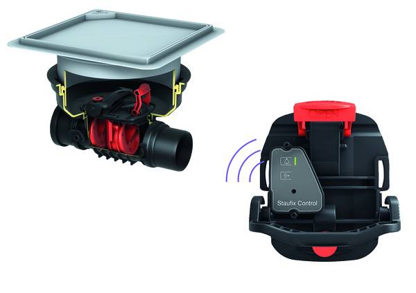 Neu in der Staufix-Familie ist der Rückstauverschluss Staufix Control. Der integrierte Signalgeber löst optischen und akustischen Alarm aus. Staufix Control verwendet dabei das EnOcean-Funkprotokoll und ist damit für die Integration in Smarthome-Lösungen geeignet. Optional sind Funkempfänger erhältlich, die den Alarm in andere Räume weiterleiten oder angeschlossene Wasserverbraucher ausschalten können.