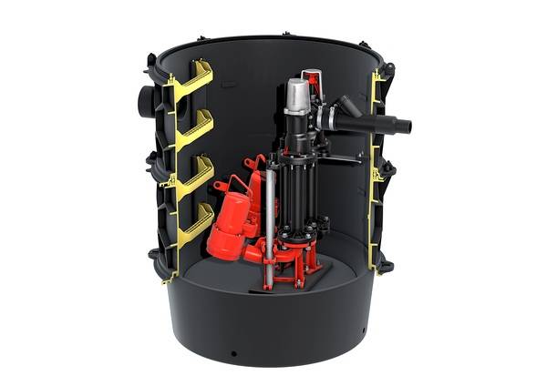 Die Pumpstationen sind als Baukastensystem konzipiert. Sie bestehen aus einem Technik- und Schachtmodul. Das breite Pumpensortiment mit einer Leistung bis zu 4 Kilowatt ermöglicht ein zuverlässiges Ableiten des Abwassers. Die Anlagen verfügen entsprechend der Abwasserart und -menge über die erforderliche Pumpenleistung und angepasste Steuerungselemente: von Schwimmer oder Tauchglocke für Anlagen zum Pumpen von Grauwasser bis zur Pegelsonde bei leistungsstarken Pumpen. Damit sind Schalthöhen im Sammelbehälter bei Bedarf variabel einstellbar. Auch Anlagen mit explosionsgeschützter Ausführung sind erhältlich.