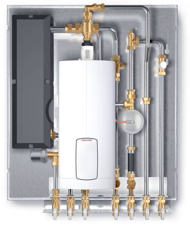 Mit der WSP DUO bietet Stiebel Eltron eine Wohnungsstation, die dank der integrierten elektrischen Nacherwärmung über einen Durchlauferhitzer die Vorteile einer zentralen mit denen einer dezentralen Trinkwarmwasserversorgung verbindet. Zudem ist eine Absenkung der Vorlauftemperaturen für die Trinkwarmwasserbereitung möglich, so dass ein noch effizienterer Betrieb der Wärmepumpenanlage im Mehrfamilienhaus erreicht wird.