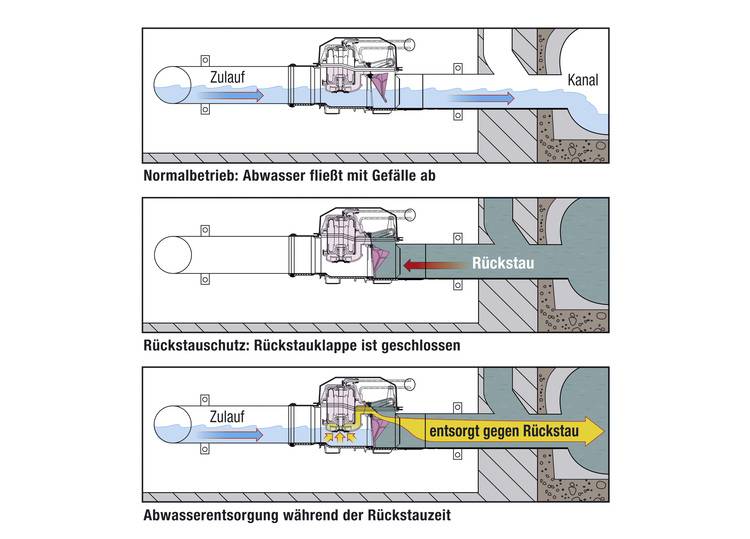 Die DIN 1986-100 beschreibt im Abschnitt 13, wie ein Schutz gegen Rückstau aussehen sollte. Man kann die Planung in folgende Schritte unterteilen: