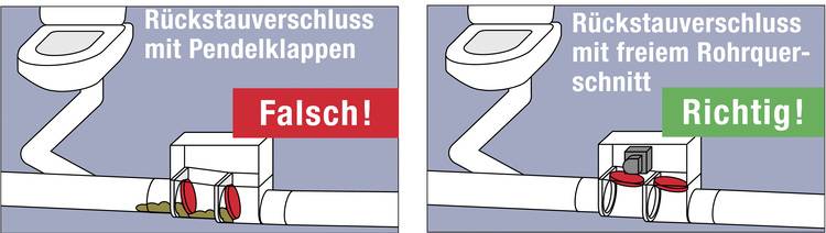 Um geeignete Sicherungseinrichtungen gegen Rückstau auswählen zu können, muss man zwischen fäkalienfreiem Abwasser, also sogenanntem Grauwasser, und fäkalienhaltigem Abwasser, sogenanntem Schwarzwasser, unterscheiden. Diese Unterscheidung ist wichtig und lässt sich sehr plausibel am Beispiel eines Rückstauverschlusses, ausgeführt als Pendelklappe, erklären. Ein solcher manueller Verschluss würde durch Fäkalien beeinträchtigt und eventuelle Ablagerungen könnten zur Funktionsstörung führen. Schwarzwasserleitungen dürfen daher nicht mit Rückstauverschlüssen ausgestattet werden, die mittels Pendelklappen einen Rückstau verhindern sollen.