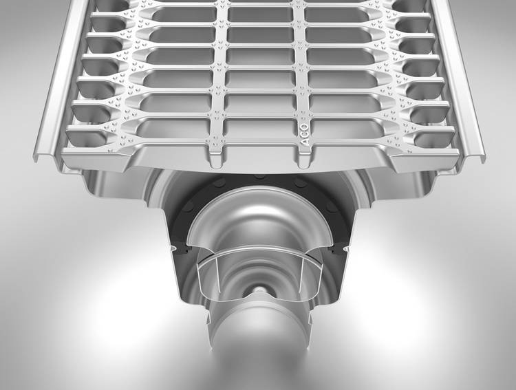 Zum Tragen kommt das Konzept großer Biegeradien von mehr als 3mm an buchstäblich allen Ecken und Enden: An den Endstücken, an den Übergängen in die Stutzen, in den Rinnenprofilen, an den Außenkanten und Stegen der Roste und sogar im Geruchverschluss. Die Minimierung der Schmutzhaftung wird gefördert durch die Verwendung von Edelstahl (Werkstoff 1.4301) mit seiner sehr glatten Oberfläche und durch die Vermeidung überlappender Schweißnähte. Die standardmäßige Hohlraumverfüllung der ACO Hygiene-Kastenrinnen erleichtert den Einbau (keine bauseitige Verfüllung erforderlich) und erhöht Standsicherheit sowie Lebensdauer, dient aber ebenso der hygienischen Optimierung: Die verbesserte Anbindung an den angrenzenden Bodenbelag verhindert die Bildung von Keimen und Bakterien in den Schnittstellen.