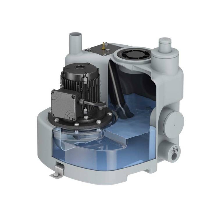 Die Anlage ist gemäß DIN EN 12050‑1 geprüft, eignet sich für fäkalienhaltiges und -freies Abwasser bis zu einer Temperatur von 40 °C (kurzfristig bis max. 60 °C). Das verstopfungsfreie Freistromlaufrad mit einem freien Durchlass von 57 mm lässt auch feste Abwasser-Bestandteile passieren. Die niedrige Drehzahl der Pumpe sorgt für Laufruhe und geräuscharmen Betrieb – alles in allem eine ideale Abwasserhebeanlage mit Rückstauschutz für Einliegerwohnungen und Kellerräume mit Hobby- und Haushaltsnutzung.
