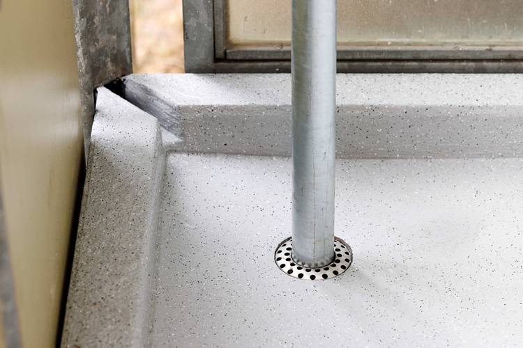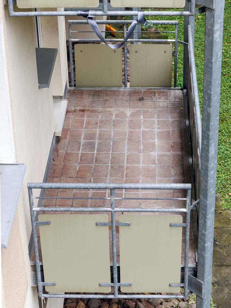 Die Notentwässerung ist der zweite Clou: Dafür wurde die alte Entwässerung über die tragenden Hohlprofile einfach umgenutzt. Dazu ist in der Balkonecke am Boden eine etwa 1,5 Zentimeter hohe Stufe ausgeführt, so dass Niederschläge erst ab einer bestimmten Höhe über den zweiten Entwässerungsweg fließen können. Dann aber ist sichergestellt, dass auch bei sehr starkem Regen das Wasser vom Balkon nicht in Richtung der Wohnungen fließt, sondern ab.