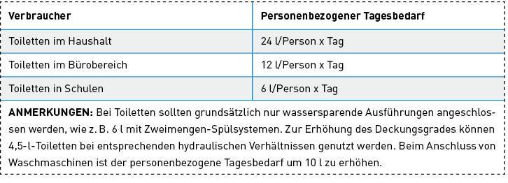 Dp,d – 24 l für Toilettenspülung + 10 l für Wäschewaschen = 34 l je Person und Tag