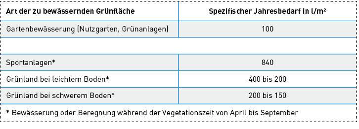 Der maximale nicht personengebundene Bedarf an Nicht-Trinkwasser Df,d – z. B. zur Gartenbewässerung – ist zu berücksichtigen.