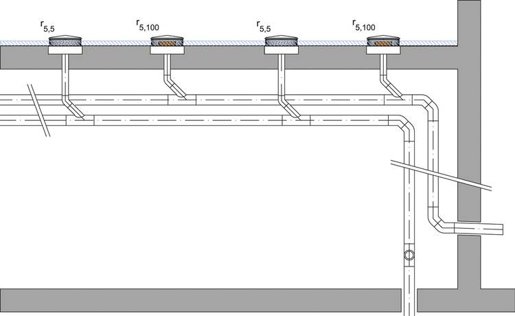 Die Dachwassereinläufe Pluvia werden direkt unter dem Dach mit einer Sammelleitung ohne Gefälle zusammengeführt. Große Dachflächen mit bis zu 5000 m² können somit über eine einzige Fallleitung mit der doppelten Ablaufmenge an Niederschlagswasser bei halbierten Rohrdurchmessern entwässert werden. Die Flachdachplanung wird dadurch einfacher und die Bauzeit reduziert. Kostenintensive Grundleitungen entfallen und die gestalterischen Möglichkeiten für das Gebäude und seine Nutzung werden um ein Vielfaches erhöht.