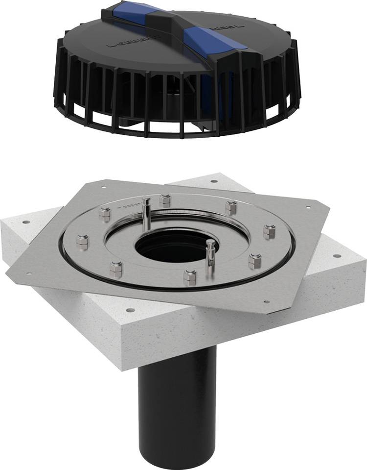 Erfahrungen mit der Unterdruckdachentwässerung gibt es bei dem Unternehmen schon seit 1981. Darauf basierend bietet das System für vielfältige Bausituationen auf dem Flachdach die passende Lösung. Die drei Systemkomponenten Dachwassereinlauf, Entwässerungssystem und Befestigungssystem zeigen in der Praxis überzeugende Montagevorteile gegenüber einer konventionellen Dachentwässerung. Mit der Unterdruckdachentwässerung lassen sich Kalt- und Warmdächer sowie Umkehrdächer und unterschiedlich begrünte Dachflächen entwässern: Das System bietet die doppelte Ablaufmenge an Niederschlagswasser bei halbierten Rohrdurchmessern und reduziert die Anzahl der Fall- und Grundleitungen. Damit ermöglicht es wesentlich mehr Freiraum bei der Planung von Gebäude und Dach, bei der Nutzung des Raums und bei der Abstimmung unter den Gewerken.