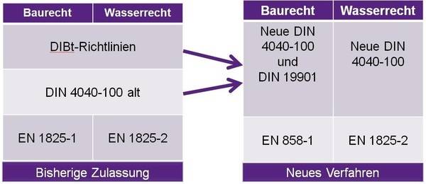 Die neue DIN 4040-100: 2016-12 beinhaltet weitere Anforderungen, welche bisher nur über eine allgemeine bauaufsichtliche Zulassung geregelt war. Dort, wo bauaufsichtliche Zulassungen noch vorhanden sind, können sich Behörden und Bauherren auf wenig Aufwand und hohe Sicherheit freuen. In allen anderen Fällen hingegen reicht eine reine CE-Kennzeichnung nach DIN EN 1825-1 nicht aus. Die komplette DIN 4040-100 und DIN 19901 muss eingehalten und sorgfältig geprüft werden. Dies erfordert viel Aufmerksamkeit und Fachkenntnis. Darauf müssen sich alle Beteiligten einstellen.