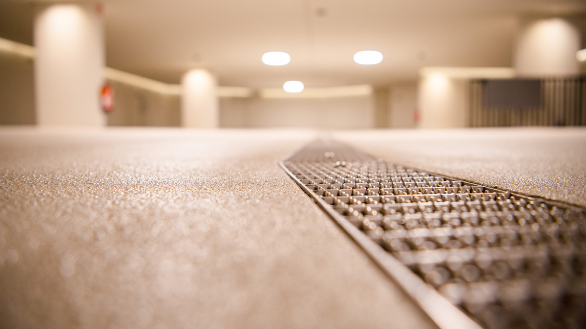 Dank ihrer modularen Bauweise ließ sich die Securin schnell und unkompliziert in den Boden integrieren. Der gelochte Anschlussflansch eignete sich optimal für die Anbindung an den Kunstharzbodenbelag. Er sorgt für eine zuverlässige Verkrallung mit dem Boden, sodass Rinne und Bodenbelag eine absolut dichte Einheit bilden.