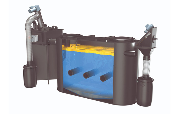 Der Fettabscheider basiert auf dem Zusammenspiel von drei Systemen: einem Grobfilter, dem Fettabscheider und einer sogenannten Skimmereinheit.