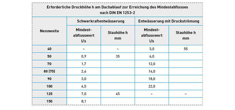 Info: Bei den Angaben in der Tabelle 10 der DIN 1986-100 handelt es sich um Mindestanforderungen für Dach- und Notabläufe.