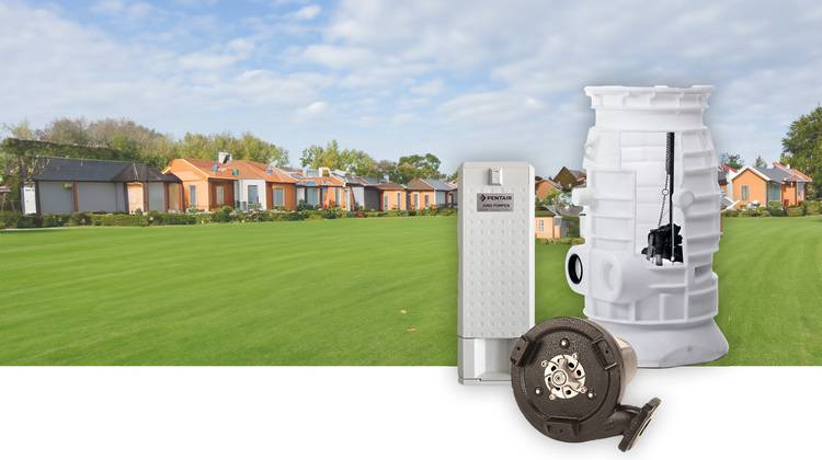 Bei der Druckentwässerung fördern kleine Hauspumpstationen das Abwasser einzelner Häuser oder Häusergruppen in ein Druckrohrnetz. Das zu entsorgende Abwasser wird dabei zunächst in einer kompakten PE-Pumpstation im Außenbereich gesammelt und anschließend mit einer Abwasserpumpe, die mit einem Schneidsystem ausgerüstet ist, an einen öffentlichen Freispiegelkanal oder eine weitere Pumpstation übergeben. (Bild 3 und 4)