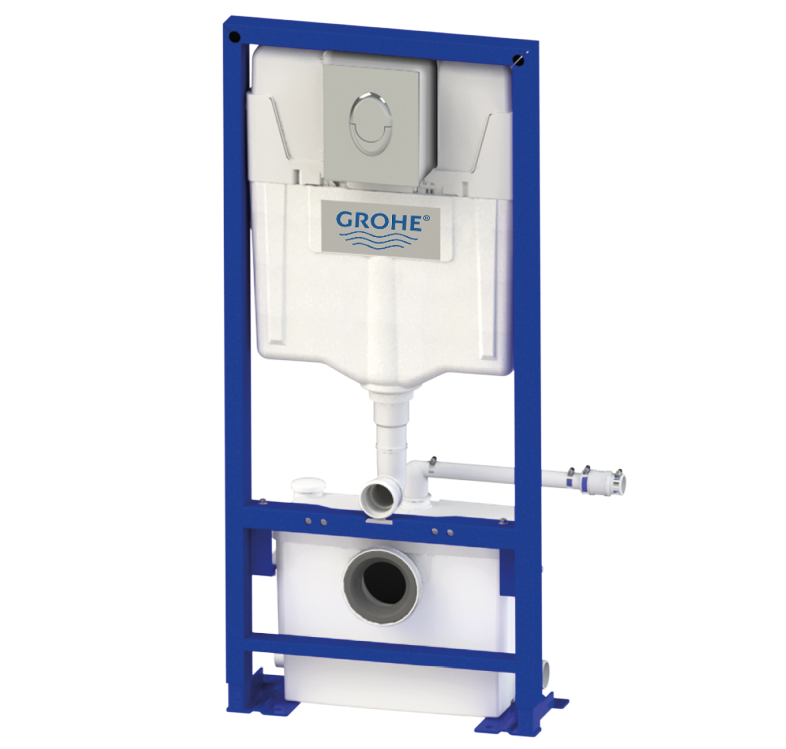 In Neubau und Sanierung ist die Badkonstruktion mit Vorwandelementen anerkannter Stand der Technik. Der schnelle „trockene“ Bauablauf sowie ein erhöhter Schallschutz sind entscheidende Vorteile. SFA Sanibroy und Grohe haben diese Installationsvorteile mit der neuen Vorwandserie Saniwall Pro UP jetzt nochmals erweitert: Die montagefertige Komplettlösung aus Hebeanlage, Vorwandmodul und Glasverkleidung ist optimal für die Montage eines wandhängenden WCs geeignet. Mit nur 500mm Einbaubreite passt sie zudem problemlos in kleine Bäder, die sich beispielsweise im Tiefgeschoss unter der Rückstauebene befinden.