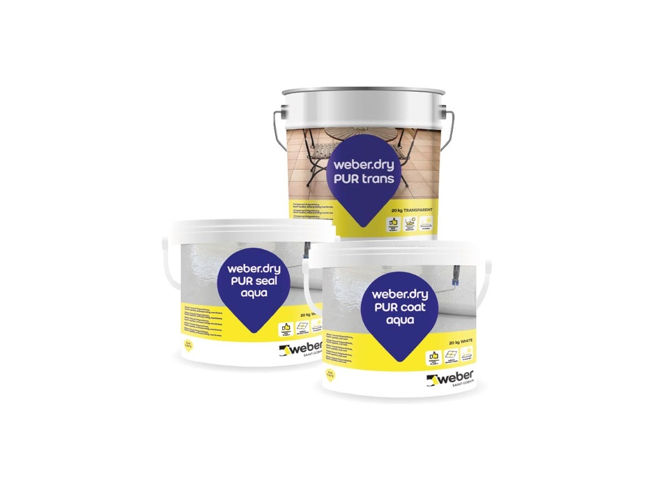 Als besonders umweltschonende Variante bietet Weber mit Weber.dry Pur seal aqua ein wasserbasiertes, lösemittelfreies Abdichtungssystem an. Es besteht ebenfalls aus einer Grundierung, einer hochflexiblen, lösemittfreien, wasserundurchlässigen Abdichtung, sowie einer pigmentierten, UV- und abriebbeständigen Versiegelung.