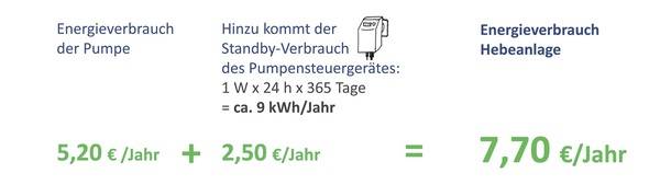 Bei der Betrachtung des relevanten Anlagen-Gesamtenergieverbrauchs spielt das Steuergerät nun aber eine entscheidende Rolle: Dieses verbraucht im Stand-by-Betrieb oft mehr Strom als die nur kurz in Betrieb befindliche Pumpe der Hebeanlage.